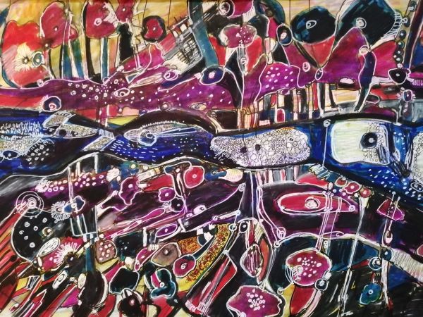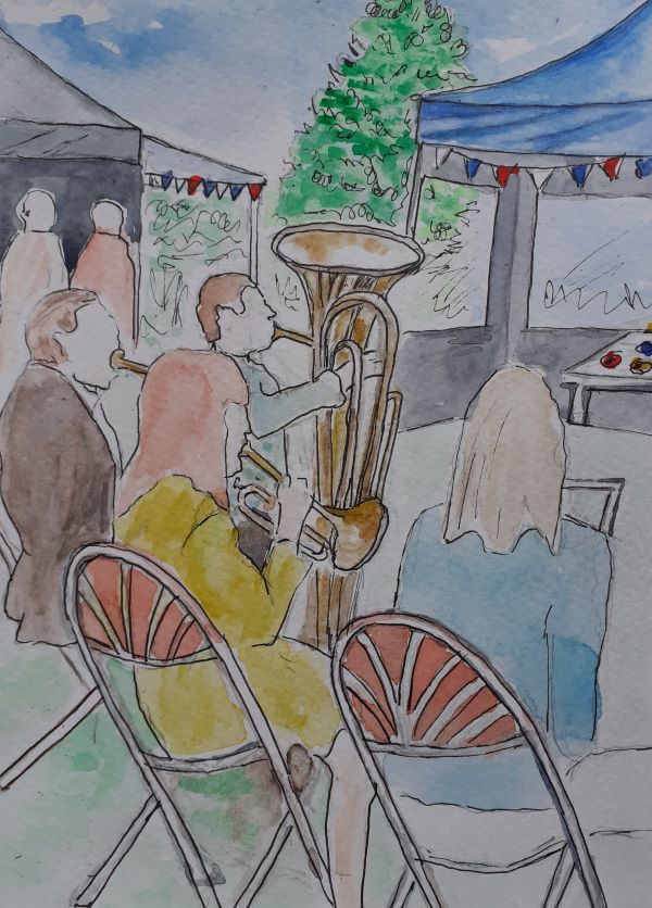 We were looking at POSITIVE and NEGATIVE space. I was going to stick a pin in a dictionary to choose a word, then FESTIVAL was proposed - so I went with it. I have used Brush pens on white card and basically "doodled" the negative space. Not a work of art, but great fun and all done in 1.5 hours!