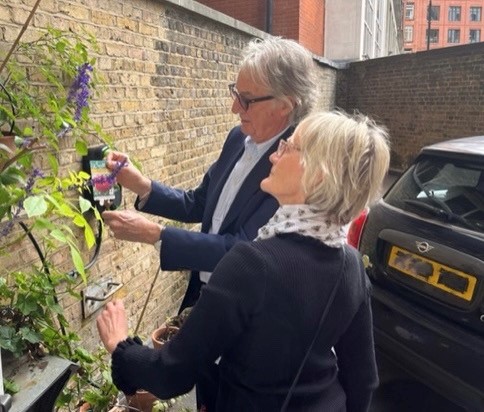 Sir Paul Smith showing Jane Hartigan, member of the group, the Rose that was named after him