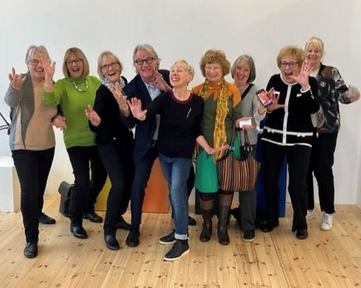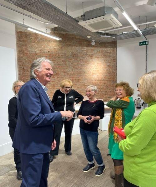 Dame Zandra Rhodes in her penthouse with Leigh Estuary u3a members