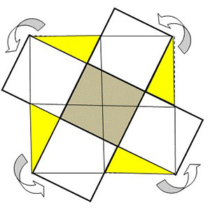 10 cm x 10 cm = 100 cm2. By rearranging the 4 segments as shown, four squares at 100 cm2 turn into five squares at 100 cm2. Therefore, the shaded square area (one of the new five squares) is then = 100 / 5 = 20 cm2.