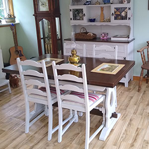 Meanwhile Trust U3A member Jan, upcycled her old furniture by covering the seats in fabric and painting them white.