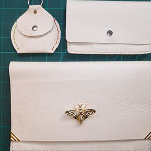 When Alan, Northampton U3A, was given leather from on an old sofa, he used it to make a clutch bag, purse and key fob.