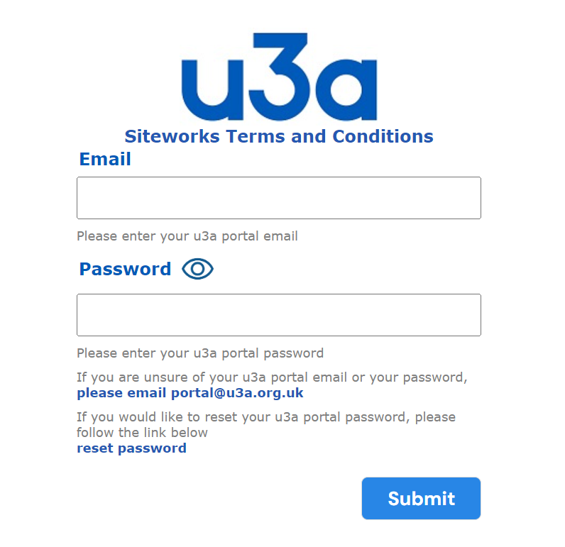 As we roll out SiteWorks sites to u3as across the movement, u3as will be contacted by email and will be asked to sign the Terms and Conditions for their SiteWorks site. This email will be sent to the Secretary, or the Portal Contact when this is a different contact addresss.