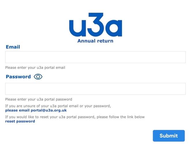 You will need to submit the information for your Annual Return online via the u3a Portal (NetSuite).