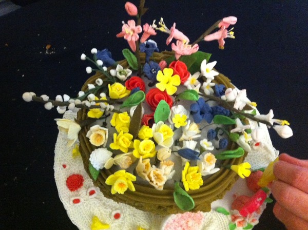 "I am a hobby baker and still taking lessons myself in sugar craft techniques. The sugar craft flowers and leaves were made using cutters and instructions. The design came from a wedding cake with some modifications."