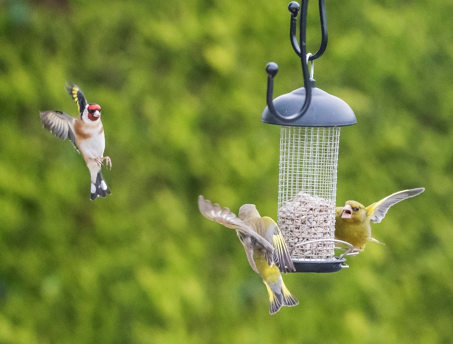 Tony, Peterborough U3A, told us that since filling their feeders with Sunflower hearts and Niger seeds, Goldfinches and Greenfinches are regular visitors to their garden. They descend in droves on some days and squabbles frequently break out, as happened on the day Tony took this picture. They can empty the Sunflower heart feeder daily. Tony also has a visiting Greater Spotted Woodpecker, Magpies, Collared Doves, Starlings, two pairs of Blackbirds, Dunnocks, and of course the obligatory Robin.