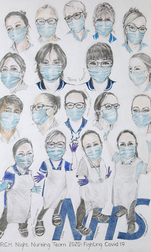 The work now hangs at HRCH along with a tribute that Janet wrote to the team and the work they have been doing during the Covid-19 crisis.